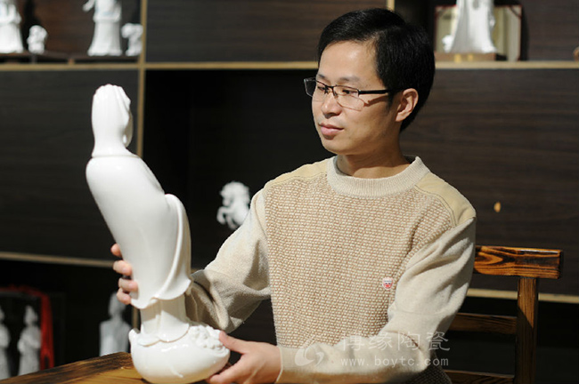 10多年潛心研習(xí)德化陶瓷文化,博采眾長,融會貫通,自成一格。2003年起從事設(shè)計(jì)工作,2006年創(chuàng)辦中華陶瓷網(wǎng)并開始大量接觸陶瓷設(shè)計(jì)、開發(fā)、銷售,與眾多當(dāng)代德化陶瓷藝術(shù)家學(xué)習(xí)交流,多次到全國陶瓷產(chǎn)區(qū)學(xué)習(xí)了解陶瓷文化,組織參加50多場次展覽,2011年創(chuàng)辦福建省德化縣博緣陶瓷文化有限公司,專業(yè)事陶瓷設(shè)計(jì)、創(chuàng)作,主要作品有佛像、人物擺件、茶器等,其所創(chuàng)作品多次榮獲國內(nèi)外金獎,深受好評。