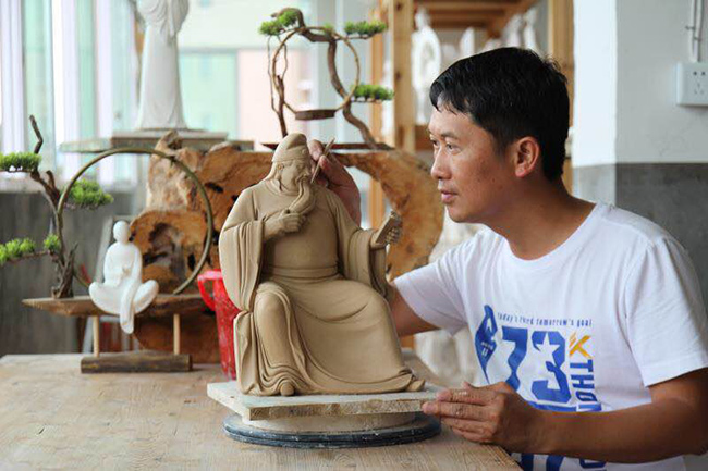 陳建陽所塑作品注重于細(xì)節(jié)之美,精益求精,故而十分著意衣紋的刻畫,使線條清晰,流暢,翻轉(zhuǎn)自然,格調(diào)高雅、肅穆大方、形態(tài)逼真、工藝精細(xì)。