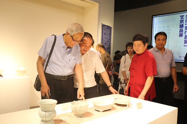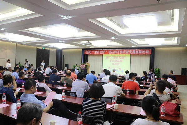 2018年7月22日,當(dāng)代“宋代名窯”作品大型聯(lián)展開(kāi)幕式暨發(fā)展高峰論壇在北京陶瓷藝術(shù)館隆重舉行。來(lái)自中國(guó)藝術(shù)研究院、中國(guó)古陶瓷學(xué)會(huì)、清華大學(xué)、以及鈞窯、汝窯、哥窯、定窯、官窯、磁州窯、耀州窯、建窯等相關(guān)機(jī)構(gòu)、地區(qū)的領(lǐng)導(dǎo)和代表蒞臨祝賀。 閩龍集團(tuán)董事長(zhǎng)、北京陶瓷藝術(shù)館名譽(yù)館長(zhǎng)陳進(jìn)林、 北京陶瓷藝術(shù)館館長(zhǎng)陳美霞、中國(guó)陶瓷終身成就獎(jiǎng)獲得者張守智、中國(guó)工藝美術(shù)學(xué)會(huì)會(huì)長(zhǎng)楊自鵬 、中國(guó)古陶瓷學(xué)會(huì)會(huì)長(zhǎng)王莉英、禹州市鈞瓷文化旅游試驗(yàn)區(qū)管理辦公室主任霍保宏、中國(guó)工藝美術(shù)大師李竹玲分別致辭。來(lái)自文物界、文化界、陶瓷界、收藏界的嘉賓及媒體記者100余人參加了開(kāi)幕儀式。