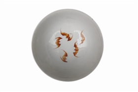 蝙蝠紋出現(xiàn)于明代,因“蝠”與“福”諧音,有在瓷器上繪百只蝙蝠,諧音“百福”。清代時期,蝙蝠紋為多見的器物主體裝飾題材之一,常以五蝠代表五福。五蝠常常圍繞一壽字或桃子,習(xí)俗稱“五福捧壽”, 寓意多福多壽!稌·洪苑》曰:“五福:一曰壽,二曰富,三曰康寧,四曰修好德,五曰考終命。”修好德謂所好者德,考終命謂善終不橫夭。