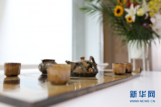 8月6日,在日本橫濱展覽現(xiàn)場(chǎng)拍攝的吉州窯陶瓷作品。