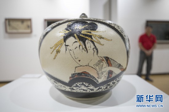 8月6日,在日本橫濱展覽現(xiàn)場(chǎng)拍攝的帶有日本傳統(tǒng)美術(shù)元素的陶瓷作品。
