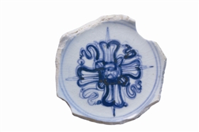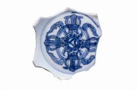 明清瓷畫中有一種“十字杵”紋樣存世量相當(dāng)大。這種紋樣與中國(guó)傳統(tǒng)文化似乎毫不相干,卻總是出現(xiàn)在瓷器盤、碗內(nèi)底這個(gè)重要的中心位置,因而帶有濃厚的神秘色彩。它的原型來(lái)自哪里?它在瓷器紋樣世界里,又意味著什么?