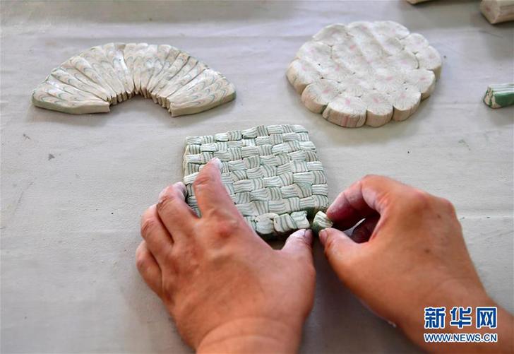 在河南省焦作市修武縣當(dāng)陽峪村,“當(dāng)陽峪絞胎瓷燒制技藝”國家級(jí)代表性傳承人柴戰(zhàn)柱采用絞胎技法,將不同花色的泥塊重組在一起。