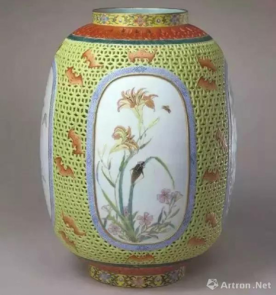清乾隆 粉彩開光鏤空花卉紋燈罩
