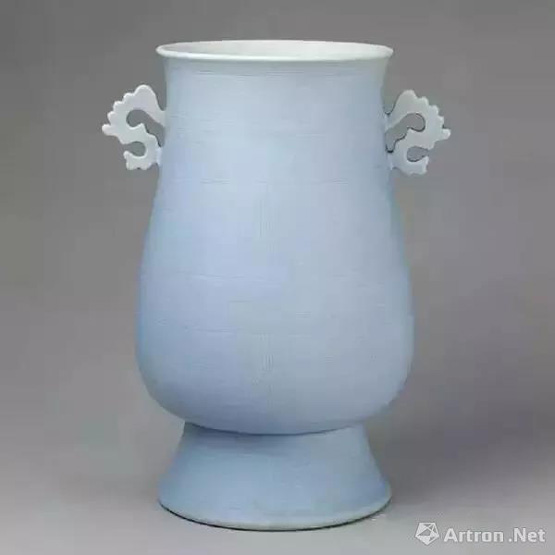 清康熙 天藍(lán)釉獸面紋螭耳尊