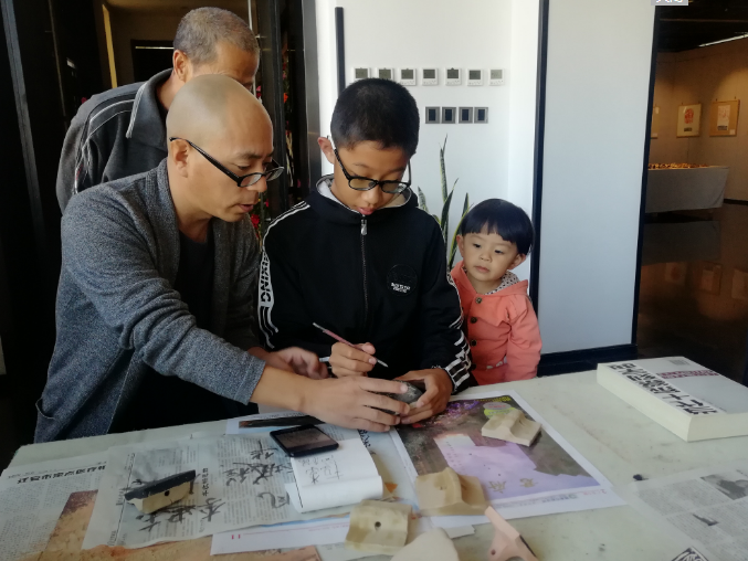 “我是第一次看到陶瓷印,看完展覽感覺真是大開眼界,陶瓷印藝術(shù)真的好神奇、好美妙!”10月6日,灤水秋韻·青年篆刻家陶瓷印研究創(chuàng)作成果展在遷安市古泥藝術(shù)館開幕,13歲的侯海諾用刻刀慢慢地試著篆刻,體驗著這種從未接觸過的藝術(shù),滿臉的興奮與驚奇。