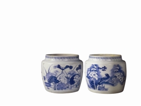罐高17.4、口徑16.2、足徑16.5厘米。開光圖案為兩幅,一幅以喜鵲與梅花為飾(圖1),喜鵲寓意喜慶,梅花呈五瓣,有“梅開五福來”之意,五福即一謂壽,二謂富,三謂康寧,四謂修好德,五謂考終命;一幅畫以鷺鷥與蓮荷(圖2),借“鷺”與“路”音同,“蓮”與“連”諧音,贊頌鴻運(yùn)高照、連中三科(鄉(xiāng)試、會(huì)試及殿試的頭名)。紋樣為康熙朝晚期習(xí)見,反映出一番國(guó)泰民安氣象。