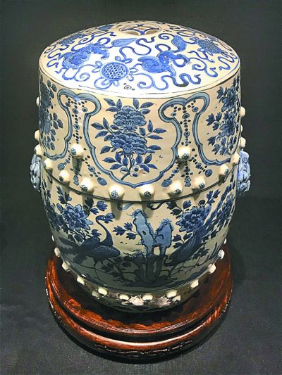 青花花鳥圖繡墩(陶瓷)