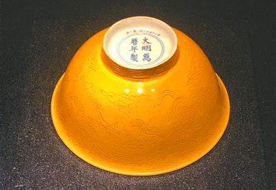 澆黃釉錐拱云龍紋碗(陶瓷)