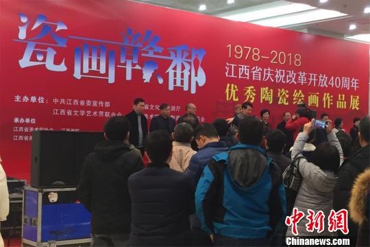12月8日,“瓷畫贛鄱——江西省慶祝改革開放40周年優(yōu)秀陶瓷繪畫作品展”在江西南昌開幕。