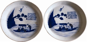 20多年前,筆者購(gòu)得一對(duì)清代青花瓷盤。兩盤大小、造型及紋飾雷同;每盤直徑26厘米。此對(duì)盤屬民窯所制,但是盤心所繪詩(shī)情畫(huà)意的畫(huà)面,卻令人過(guò)目難忘。