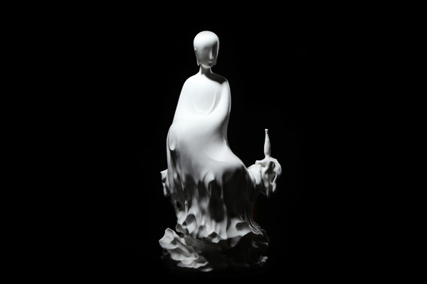 或許是感覺到德化瓷藝需要新的突破,在創(chuàng)作了大量宗教題材的作品后,蘇獻(xiàn)忠第一次否定了自己,于是他報名參加了德化縣與中央工藝美術(shù)學(xué)院聯(lián)辦的藝術(shù)進(jìn)修班。進(jìn)修回來,蘇獻(xiàn)忠立即投身創(chuàng)作“百戲”系列,以現(xiàn)代雕塑語言表達(dá)漢代百戲的神韻。那一時期,他始終在探索,如何從傳統(tǒng)文化中挖掘出一些現(xiàn)代元素,接連做了女性題材的“江南”系列和“水滸”系列,深受廣大收藏愛好者的喜愛。
