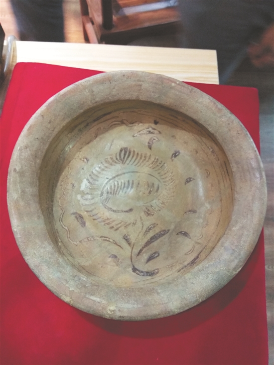 “這件是外銷往菲律賓的葵花盆,一位朋友從拍賣行拍得,后來轉賣給我。”郭福榮手持青釉褐彩葵花盆介紹,磁灶窯產(chǎn)品生產(chǎn)工藝博釆眾長,獨具特色,深受海外歡迎。