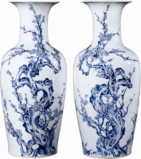 民國 王步作青花歲寒三友圖觀音瓶(一對)