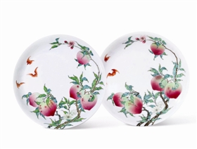 清雍正 粉彩過枝八桃五蝠福壽雙全盤(一對)