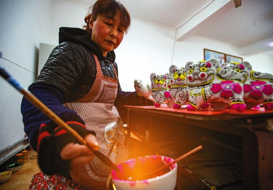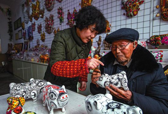 年輕一代手藝人不僅繼承了老一代泥塑人的特點,而且更富有創(chuàng)新精神。每年過年前,都是胡小紅最忙的時候。胡小紅是鳳翔泥塑的第五代傳承人、胡深先生的女兒,她從小就跟隨父親學藝。農(nóng)歷己亥豬年,胡小紅設(shè)計推出了福壽豬、福孝豬、笑笑豬、傳統(tǒng)豬4種泥塑造型,在保留傳統(tǒng)的同時,泥塑豬的色彩更向現(xiàn)代、時尚靠攏,有的作品用了半彩半素的方式上色,給人以清新亮麗之感。胡小紅表示,現(xiàn)在一些年輕人對傳統(tǒng)泥塑了解少,新設(shè)計的作品就是希望更多的人能夠了解鳳翔泥塑,滿足不同年齡段人群的需求。