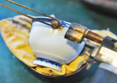 鋦瓷工序繁瑣,每一步都需要耐心和細(xì)心。