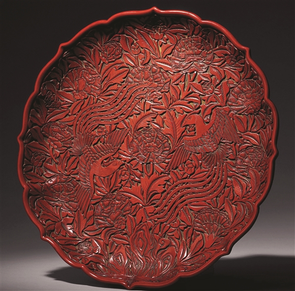 元-明初 剔紅花鳥紋菱口大盤