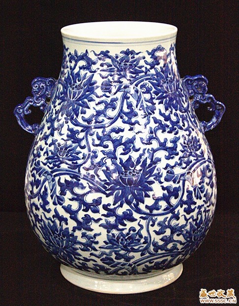 青花纏枝蓮紋雙螭耳鹿頭尊