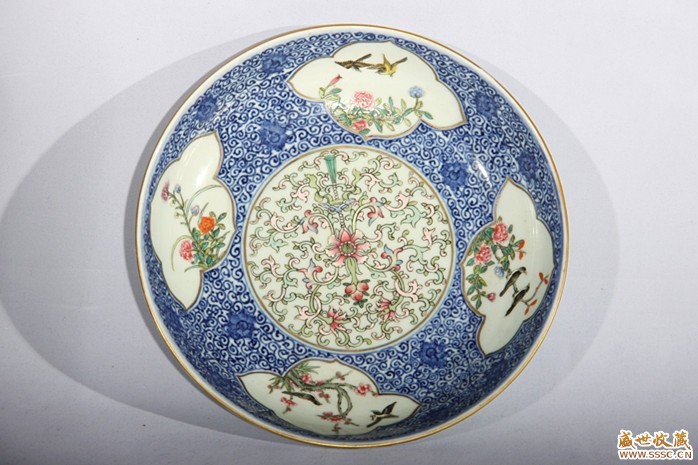 青花開窗粉彩花鳥紋盤(清宣統(tǒng))