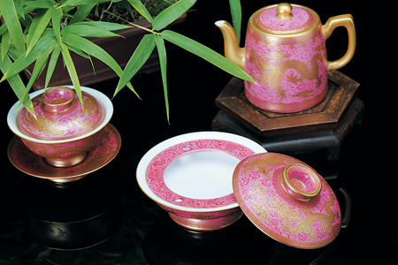 景德鎮(zhèn)豐窯澐知味陶瓷文化有限公司以胭脂紅和皇家藍(lán)產(chǎn)品為主打,衍生出青花、粉彩、描金、軋道等多種獨(dú)門(mén)工藝,據(jù)了解,胭脂紅瓷器創(chuàng)燒于清康熙末年,雍正、乾隆、嘉慶、光緒等朝均有燒造,其中以雍正朝產(chǎn)量最大,質(zhì)量最精。它是一種以微量金(Au)作著色劑,在爐內(nèi)經(jīng)800℃左右烘燒而成的低溫紅釉。這種紅釉頗如婦女化妝用的胭脂之色,故又名“胭脂紅”。
