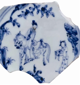 這幅光緒年間的瓷畫(見圖),從畫面看,畫中只有兩人,夫人盛裝立在馬前,侍女搬櫈子過來,準備侍候夫人上馬。人物主次大小布局的秩序非常合理,有樹木、花草、山石,畫面顯得活潑而生動。作為全畫中心人物的“夫人”正待上馬,與前來侍騎的侍女有照應(yīng)盼顧,近處點綴了山石和綠樹,讓畫面集中、完美地統(tǒng)一了起來。想必是工匠于想象中,演繹了天寶年間玄宗寵妃玉環(huán)的三姐虢國夫人盛裝準備出游的畫面一角。