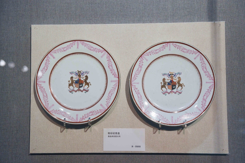 這是展出的從意大利“歸來(lái)”的粉彩紋章盤(pán)