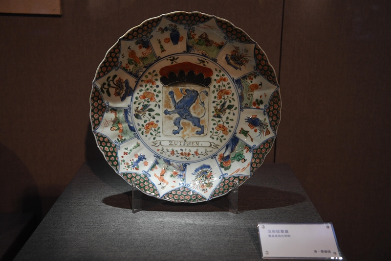 這是展出的從比利時(shí)“歸來(lái)”的五彩紋章盤(pán)
