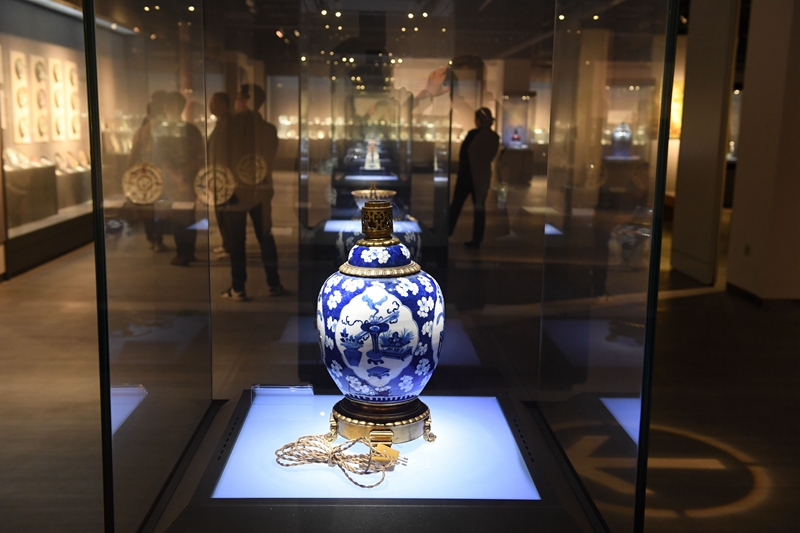 這是展出的從意大利“歸來(lái)”的青花開(kāi)光博古紋罐