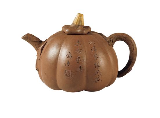 我個人覺得水平最高的還是陳鳴遠,清朝順治至康熙間人。他繼承了明代文人壺樸素高雅的造型,又著重發(fā)展了寫實的自然形的壺。他有很高的文化素養(yǎng),在壺上刻的字有很深的含義,書法也有晉唐之風。他的名作之一蠶桑壺,現(xiàn)藏于香港中文大學文物館,壺身上有幾只蠶在吃葉子,很自然,不花哨,但極其精妙。陳鳴遠所有的壺都很好,這也是紫砂界公認的。