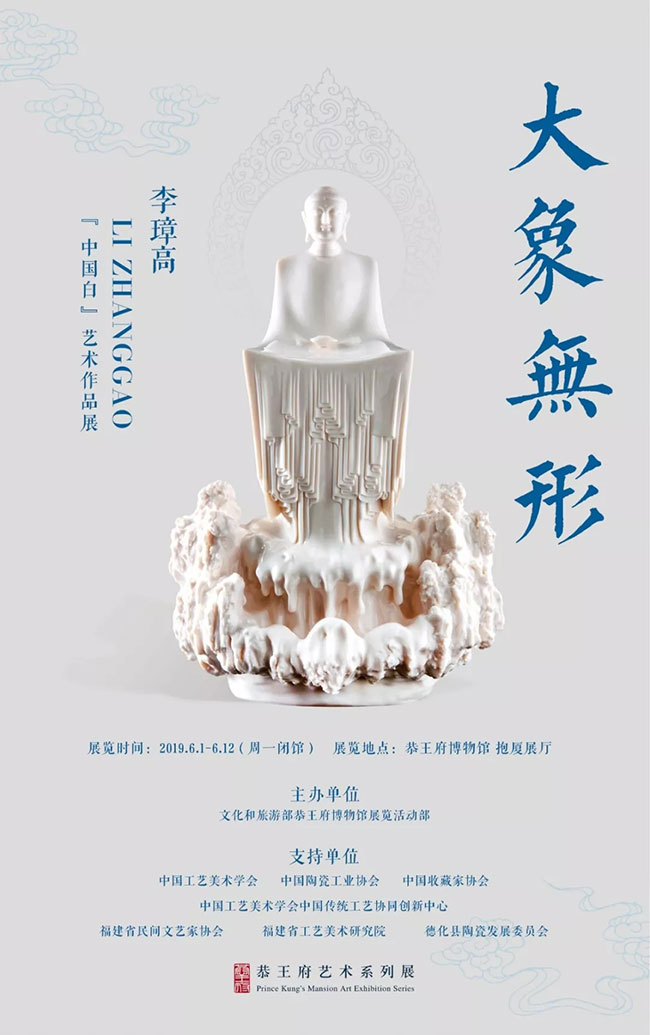 大象無形——李璋高“中國白”藝術(shù)作品展,在6月3日上午10點(diǎn)在北京恭王府抱廈廳舉行開幕式,整個(gè)展出時(shí)間從6月1日持續(xù)至6月12日。