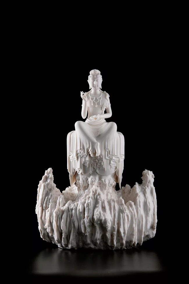 李璋高是德化白瓷界具有創(chuàng)新精神的年輕藝術(shù)家,已經(jīng)初步形成了自己獨(dú)特的藝術(shù)語言,他的作品以佛像和仕女為主,盡管也是傳統(tǒng)題材,但他的造型風(fēng)格與眾不同。此次將在抱廈展廳展出其近年來精心創(chuàng)作作品30余件。