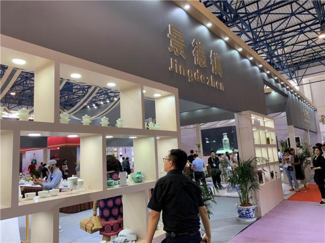 ↑2019中國國際精品陶瓷展覽會上的景德鎮(zhèn)專館。周劍攝