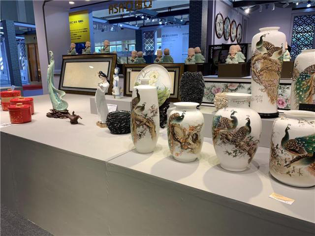 ↑2019中國國際精品陶瓷展覽會上展出的陶瓷精品。周劍攝