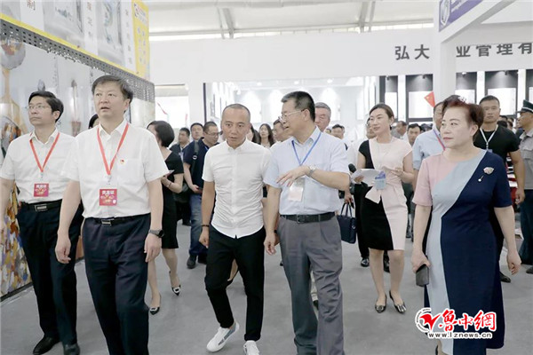 淄博市委常委、宣傳部部長畢榮青在吳董陪同下參觀陶博會·中國財富陶瓷城建陶會場