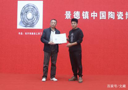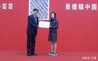 (景德鎮(zhèn)市文廣新旅局副局長陳一奇為曹建文教授頒發(fā)證書)
