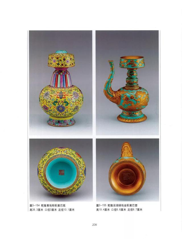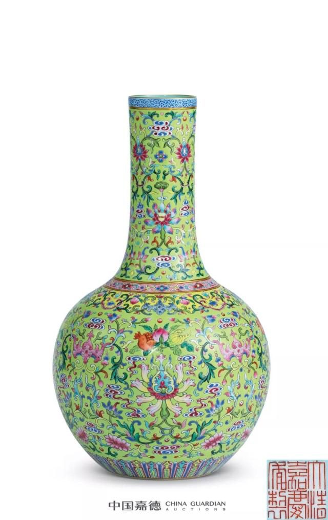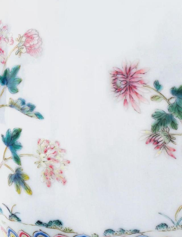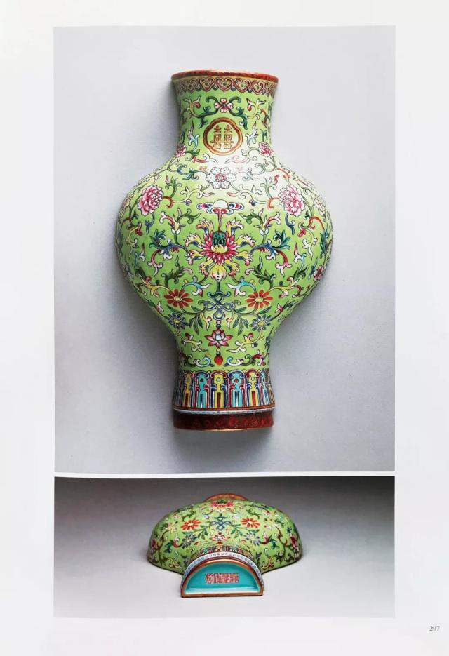 此外查閱公私收藏資料可以發(fā)現(xiàn),目前所見(jiàn)的嘉慶色地洋彩器,綠地作品數(shù)量尤多,說(shuō)明此種顏色頗受嘉慶皇帝喜愛(ài)。