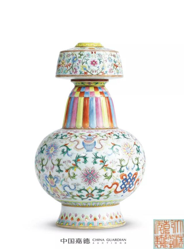 洋彩纏枝蓮?fù)邪藢毤y賁巴瓶