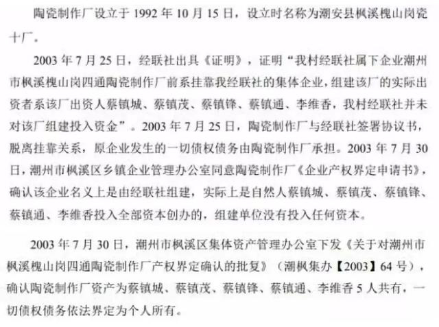 陶瓷企業(yè)大多數(shù)由鄉(xiāng)鎮(zhèn)企業(yè)改制而來,中間經(jīng)歷過太多次增資擴股、新老交替等等,這都是一本糊涂賬。