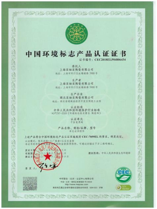 中國(guó)環(huán)境標(biāo)志,是目前國(guó)內(nèi)市場(chǎng)公認(rèn)的綠色環(huán)保產(chǎn)品證書,因其環(huán)保要求相當(dāng)高,也被稱為國(guó)內(nèi)最難通過的環(huán)保證書。中國(guó)環(huán)境標(biāo)志已與澳大利亞、韓國(guó)、日本、新西蘭、德國(guó)、泰國(guó)、北歐等國(guó)家環(huán)境標(biāo)志機(jī)構(gòu)簽署了互認(rèn)合作和代理協(xié)議,實(shí)現(xiàn)國(guó)際互認(rèn)。榮獲此譽(yù)也彰顯了亞細(xì)亞瓷磚在中國(guó)乃至全球綠色制造的領(lǐng) 先地位。