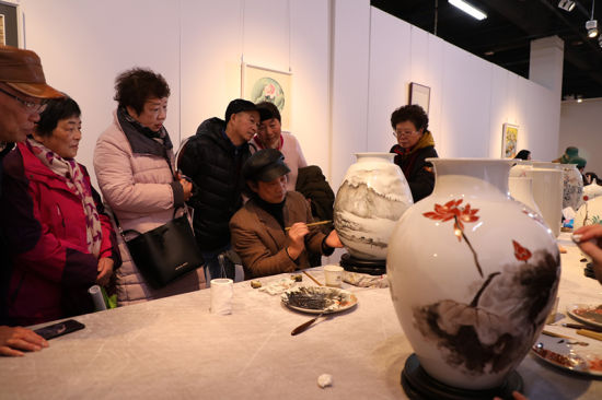 在開幕儀式之后,兩地藝術(shù)家舉行了一場以“傳承千年瓷藝·弘揚(yáng)海派文化”為主題的交流座談會(huì)。探索藝術(shù)發(fā)展,加強(qiáng)藝術(shù)的理論研究與實(shí)踐探索,展望兩地藝術(shù)交流平臺(tái)的搭建與發(fā)展。座談會(huì)上兩地藝術(shù)家暢所欲言,氣氛熱烈。同時(shí),另一部分參展藝術(shù)家在展廳內(nèi)給參觀的觀眾進(jìn)行了現(xiàn)場的陶瓷繪畫、制作瓷坯的表演,取得了很好的反響。