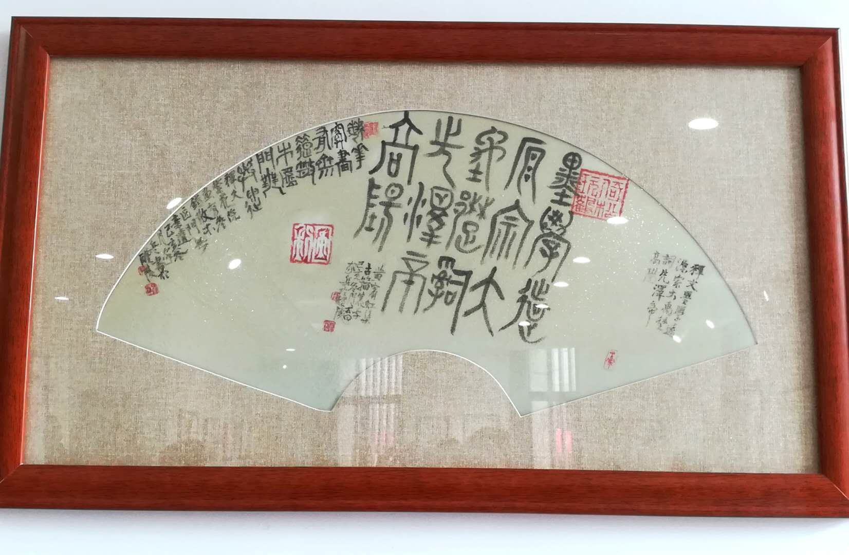 或園或方的高溫仿宣瓷板上,隸書斗方、行書橫條、小楷、楷書中堂等四類書法作品色彩柔和、圓潤,爭奇斗艷,令人嘖嘖稱奇。