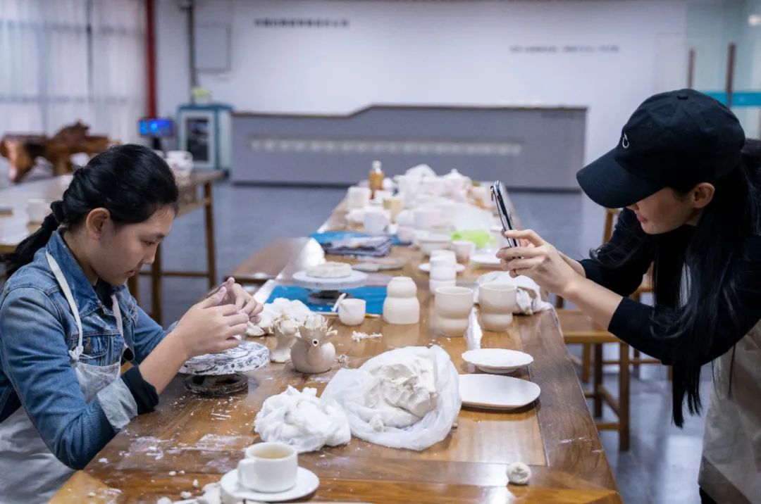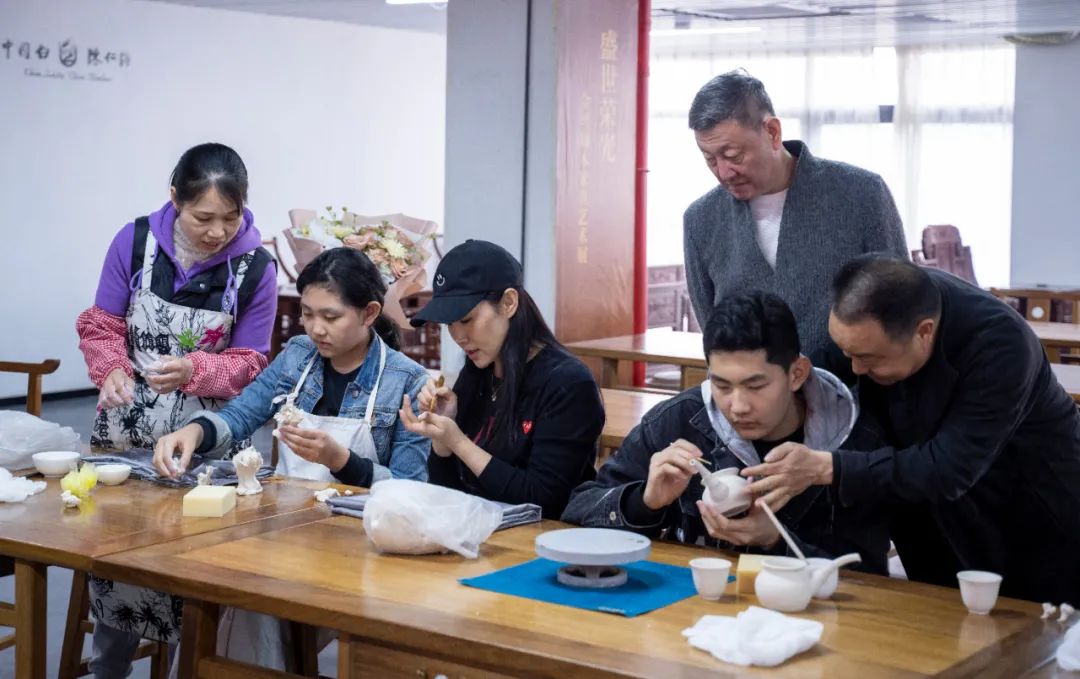 如此精美的“中國白”是怎樣制作出來的呢?參訪過程中,韓磊老師一行還興致勃勃的玩起了泥巴,參與到非遺傳承項目“中國白”陶瓷技藝的創(chuàng)作當(dāng)中,現(xiàn)場歡聲笑語,其樂融融。