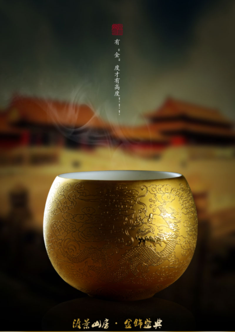 渡景山房浮雕真金系列產品,將精工花紙和手工繪制藝術完美融合,采用與金磚國禮同等級的德國進口真金裝飾,圖案設計精美,紋理立體清晰,風格獨特,極具奢華藝術。如“金飾盛典”,開創(chuàng)出鎏金光影的世界,雅亮交融相得益彰,不失文雅之氣。