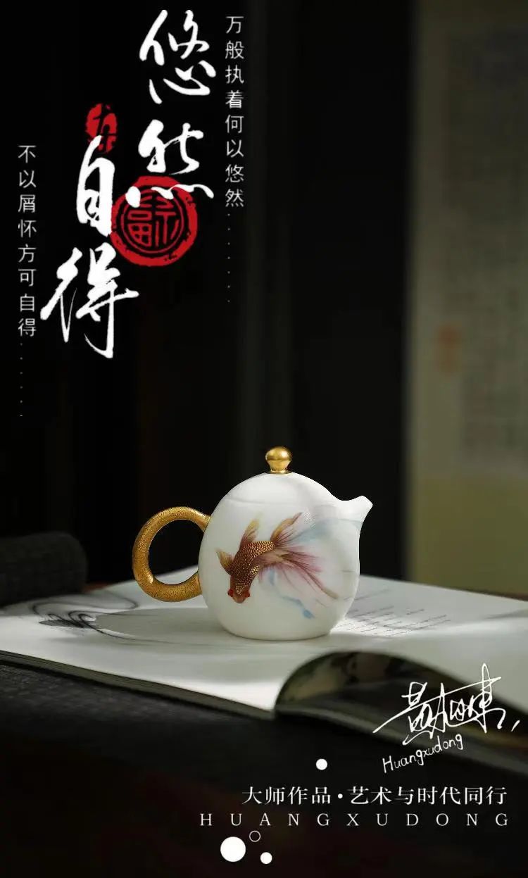 這是渡景山房藝術總監(jiān)黃旭東創(chuàng)作的《悠然自得》系列產品,以稀有的冰凝玉礦泥為材質,采用堆金工藝,高溫1350度燒制而成。他在傳統(tǒng)陶瓷藝術之上加入新的變化和創(chuàng)意,結合新材料的運用,產品特征鮮明,極富藝術感染力?吹剿,或許,你無法對它在設計風格、創(chuàng)作技法等方面說出個子丑寅卯,但它的魅力毫不掩飾,不會因為你對它的陌生而減少。