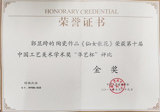 2017年05月《仙女散花》榮獲第十屆中國工藝美術學術獎“華藝杯”評比金獎。