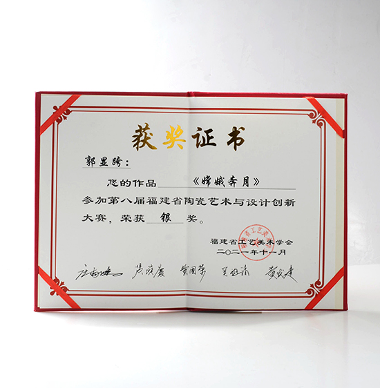 2021年11月《嫦娥奔月》獲榮第八屆福建省陶瓷藝術與設計創(chuàng)新大 賽銀獎;