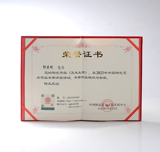 2023年10月《玉兔生輝》榮獲2023年北京中國陶瓷藝術名家作品評 比金獎;