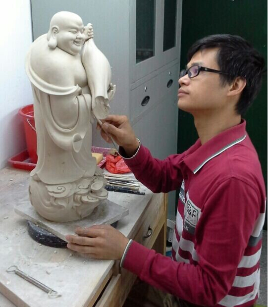 陳廷實(shí),1977年出生于中國(guó)瓷都·德化,福建省工藝美術(shù)師、高級(jí)工藝美術(shù)師、中國(guó)陶瓷藝術(shù)家、泉州禪藝善館執(zhí)行社長(zhǎng),泉州市工藝美術(shù)協(xié)會(huì)第一屆理事會(huì)理事。從事陶瓷設(shè)計(jì)雕塑堆雕創(chuàng)作生產(chǎn)21年,主要?jiǎng)?chuàng)作以觀音、彌勒和古代神像人物為主。造型務(wù)實(shí)、瀟灑,質(zhì)感強(qiáng)烈、并恰當(dāng)?shù)剡\(yùn)用了線條在瓷雕中的表現(xiàn)力,結(jié)合德化陶瓷“白”、“潤(rùn)”、“飽滿”等特性更好的加以展示;從立意到表現(xiàn)手段,在繼承傳統(tǒng)基礎(chǔ)上敢于創(chuàng)新。榮獲福建省泉州市廣播電視臺(tái)《海絲名家》冠名研究所。